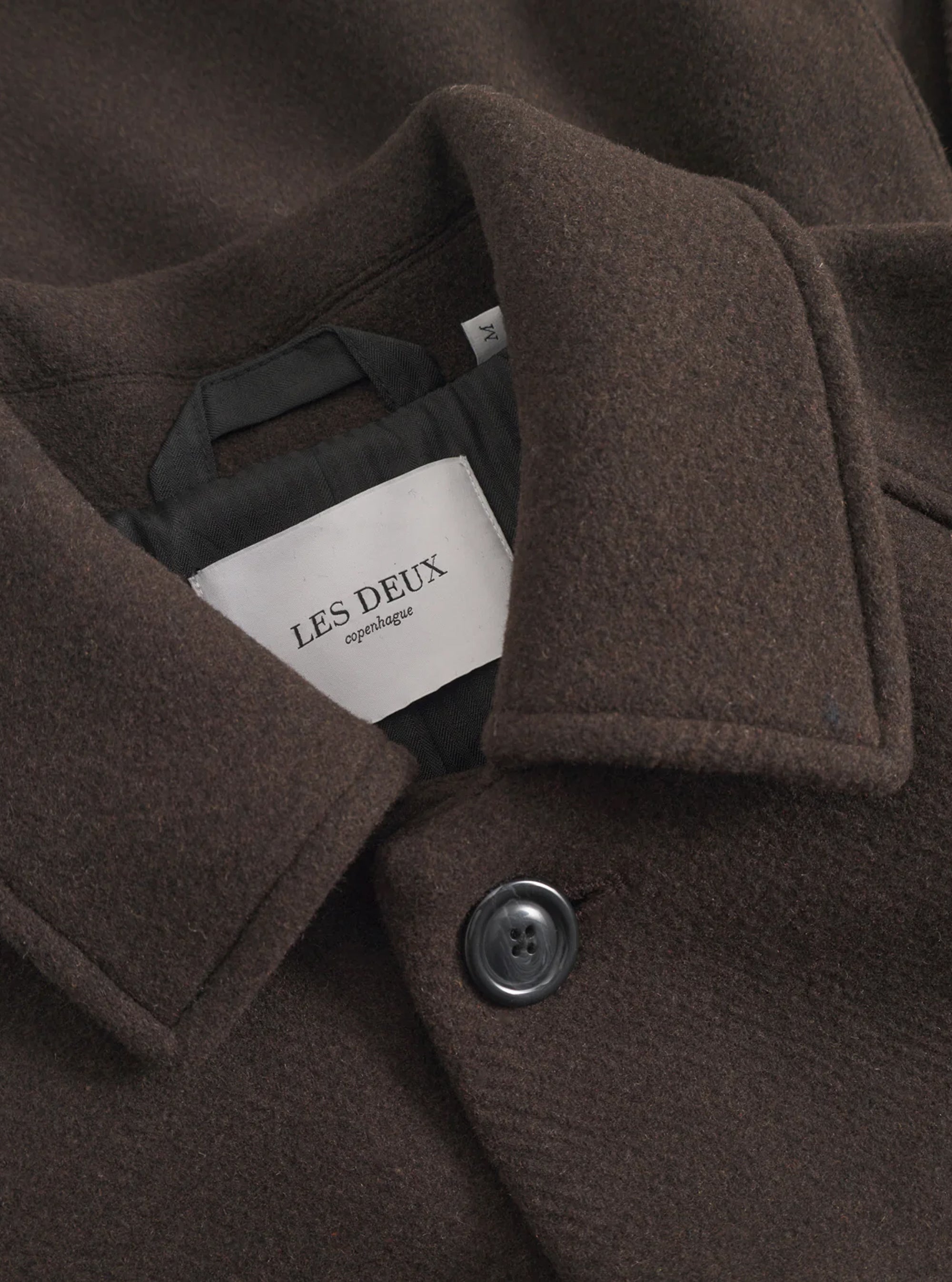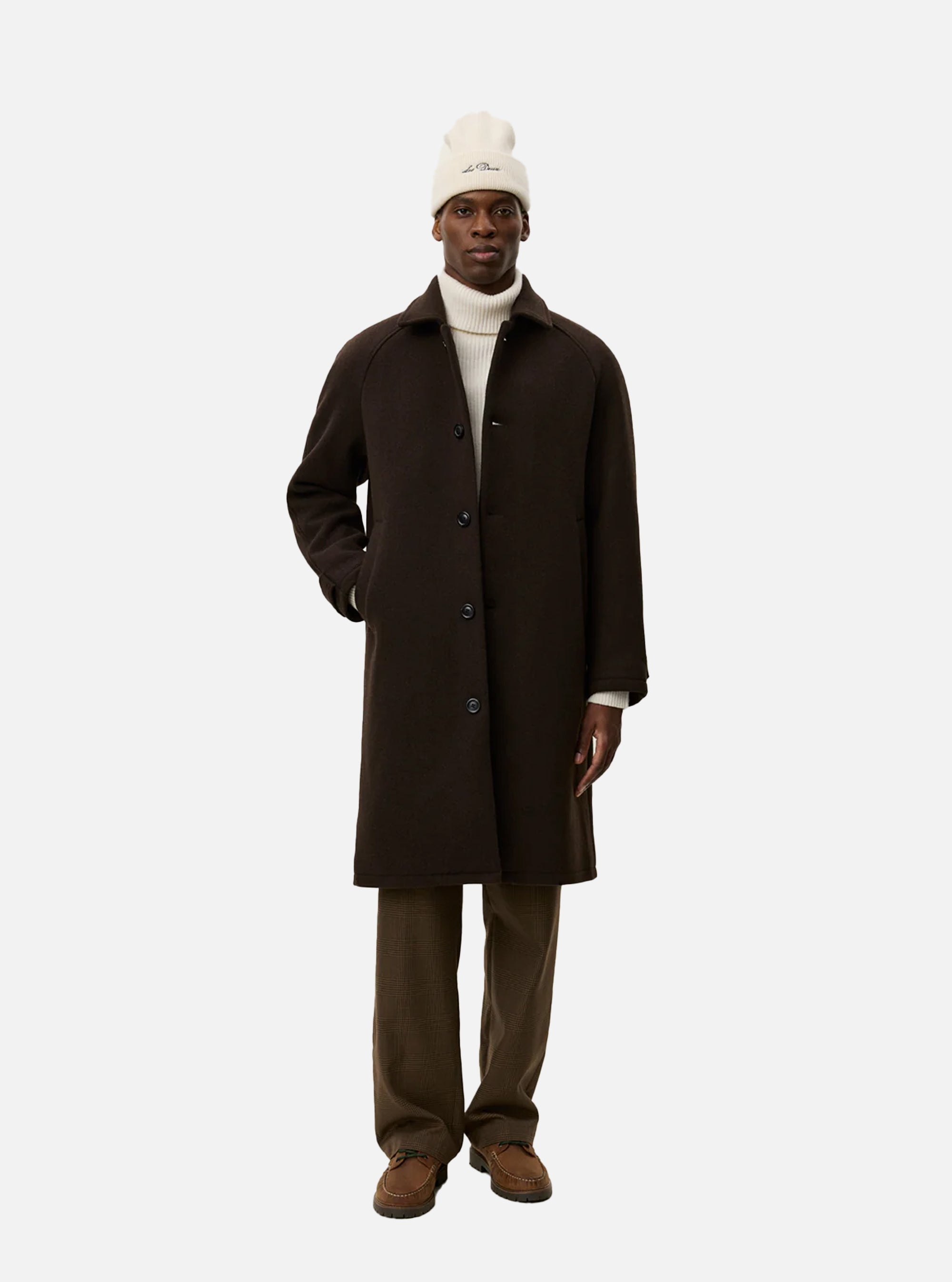 Forma atemporal, textura suave. El abrigo Michael de Les Deux es un clásico de mezcla de lana con líneas limpias, mangas raglán y un sutil guiño a la sastrería tradicional.
