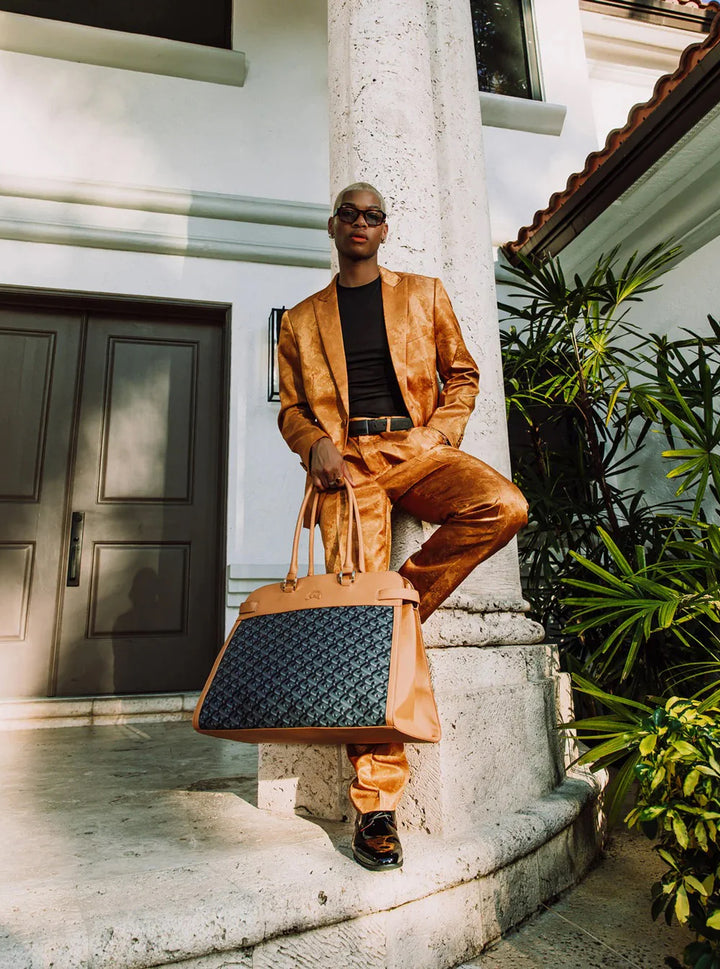 - Forro personalizado de satén rojo con logotipo de tiburón en relieve y acabados de cuero vegano