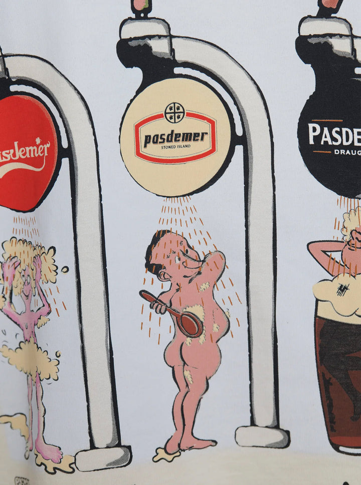 Presenta estampados pigmentados en la parte delantera y trasera: gráficos divertidos inspirados en pubs en la parte trasera y arte “PUB de Mer” en el pecho.