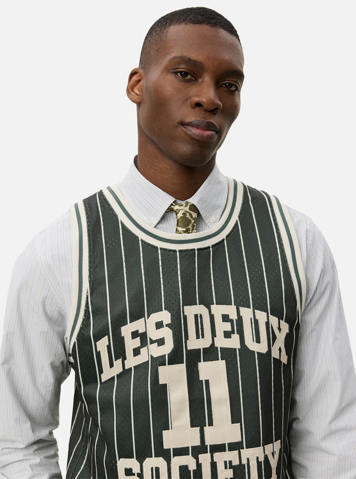 La Silas de Les Deux es una camiseta sin mangas holgada inspirada en el baloncesto confeccionada con malla de poliéster transpirable, que presenta ilustraciones de letras llamativas en la parte delantera y cinta acanalada en contraste en el cuello y las sisas para ese toque deportivo vintage. Perfecta para llevarla sola, encima de una camisa o de una sudadera.