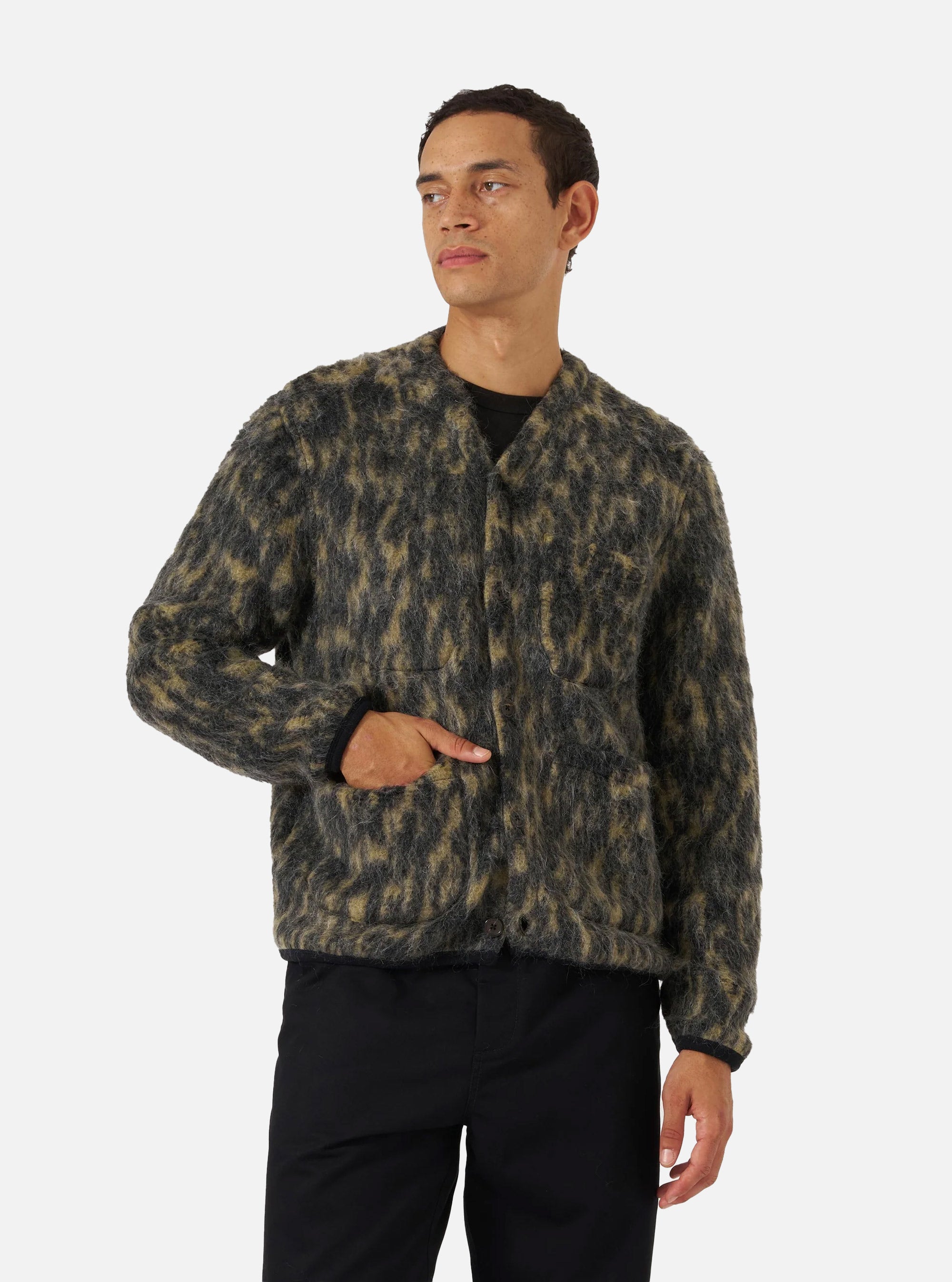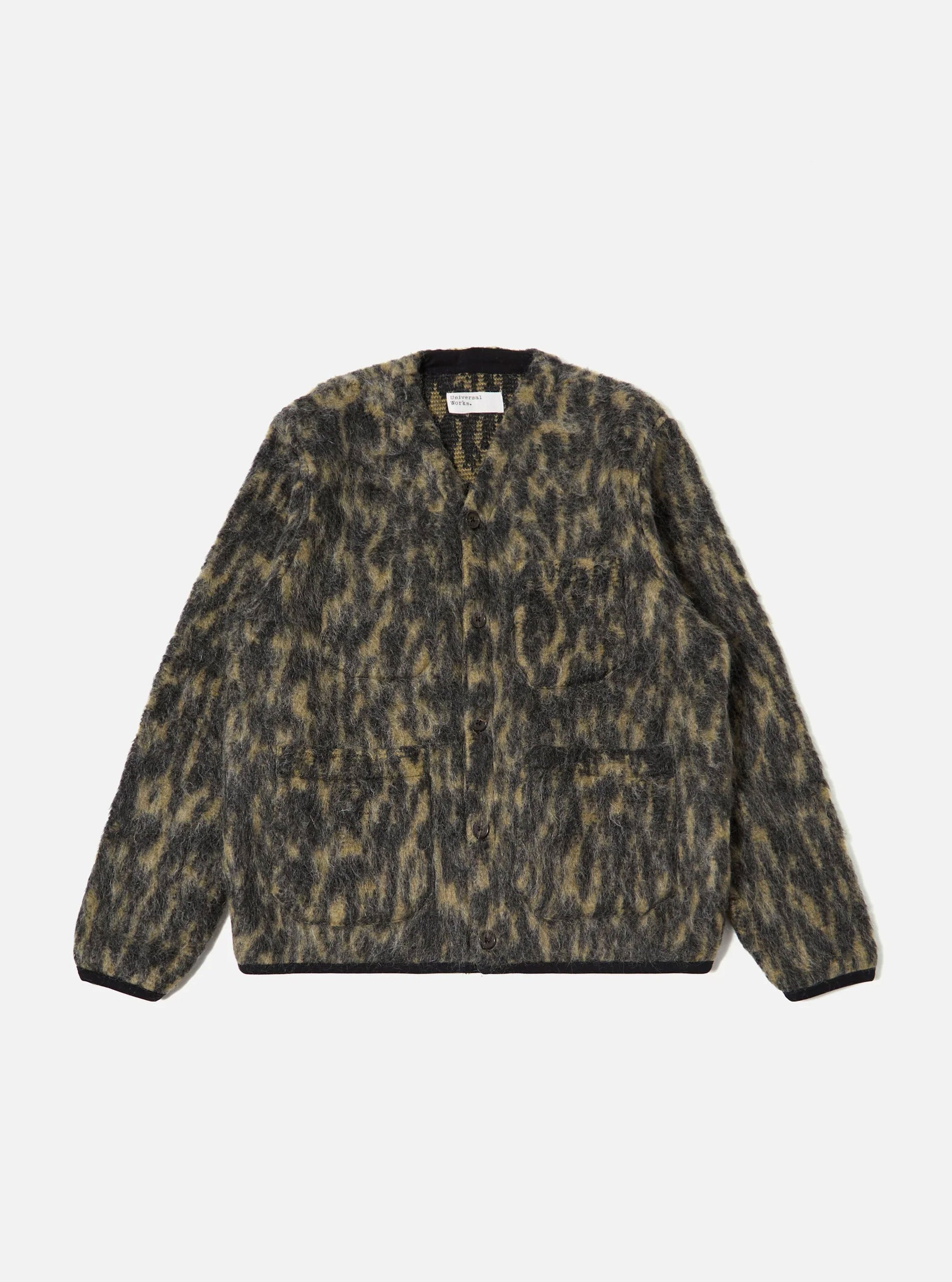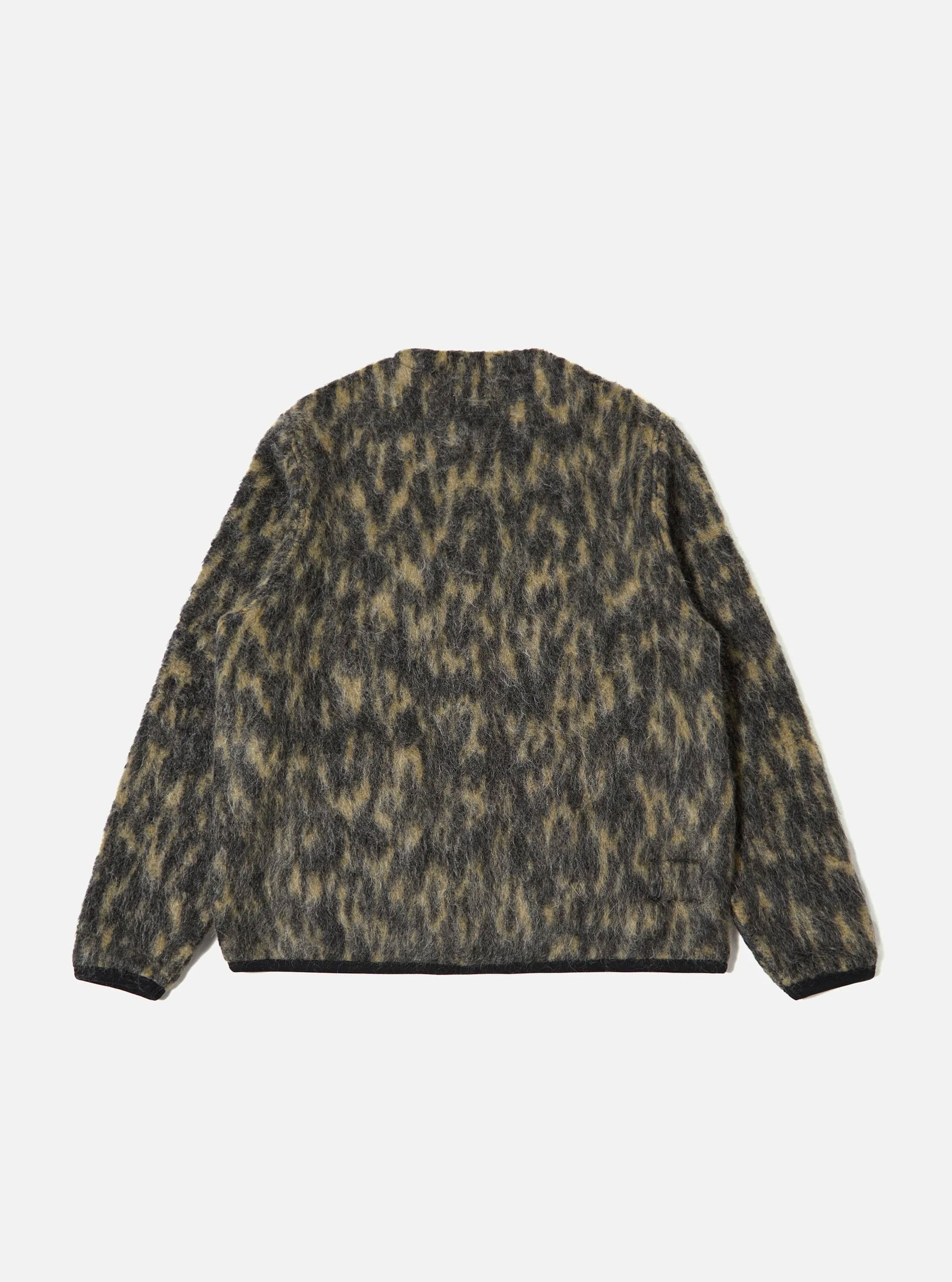 Un clásico de Universal Works, el cárdigan polar tiene botones autoadherentes en la parte delantera, tres bolsillos de parche exteriores y un cuarto en el interior. Puños y bajo ribeteados en algodón.