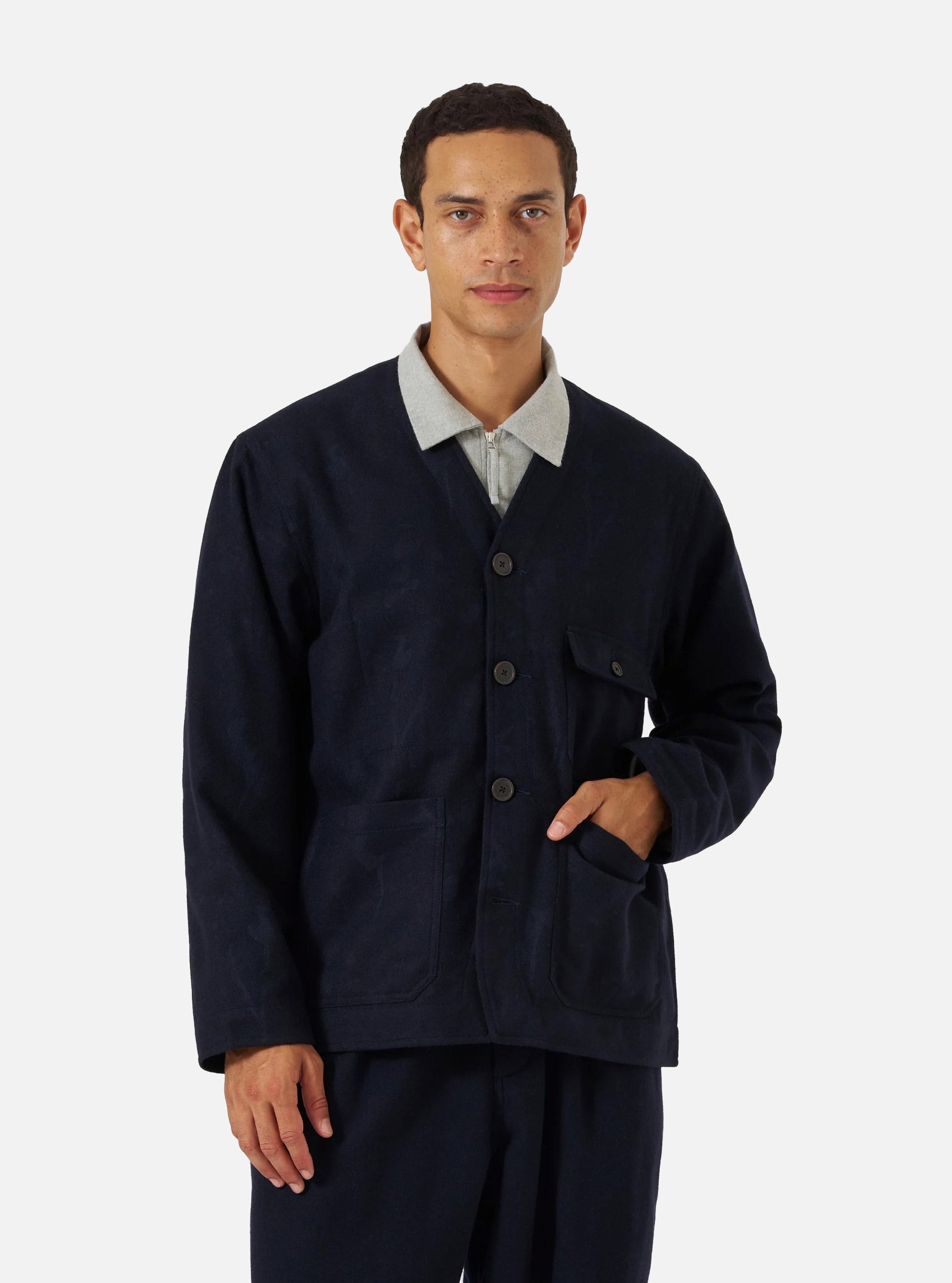 La chaqueta Cabin de Universal Works es una chaqueta estilo cárdigan sin cuello con dos bolsillos de parche inferiores, un bolsillo con solapa y botón más pequeño y un bolsillo interior. En esta ocasión presenta un estampado floral que cambia por completo la prenda sin llamar demasiado la atención. Opción de pantalón a juego.
