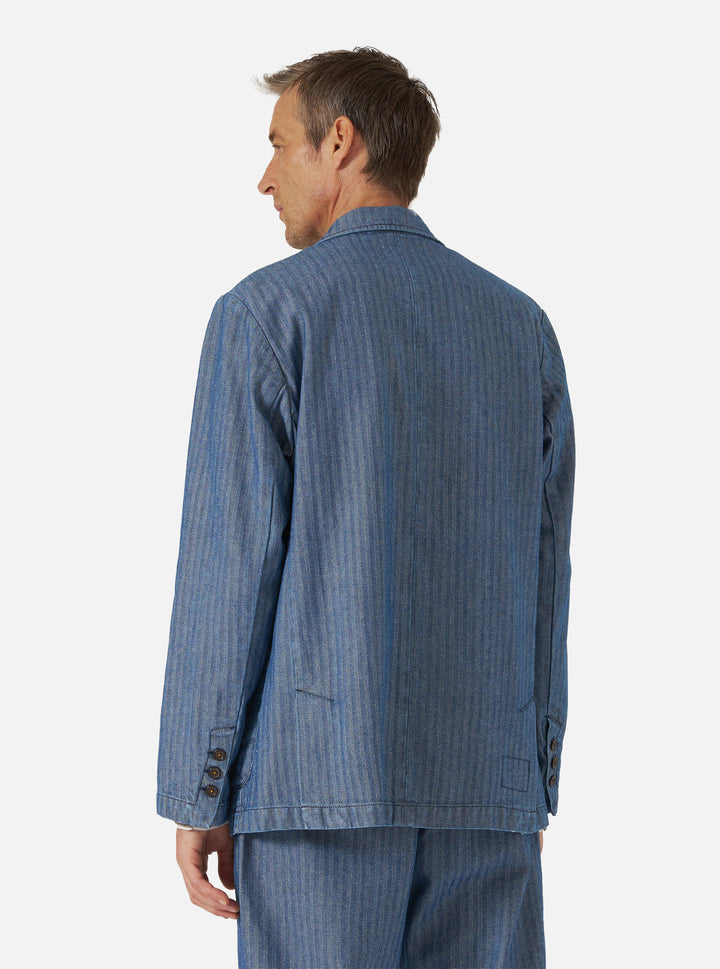 La Manor de Universal Works es una versión informal del clásico británico más formal, una blazer cruzada con hombros más suaves y puños abotonados totalmente funcionales. Este denim de espiga 100 % algodón tiene un 40 % de algodón reciclado. Con un lavado intenso para crear un look vintage, está teñido con índigo. Al igual que los pantalones a juego, esta prenda se desteñirá gradualmente con el uso dándole un carácter único.