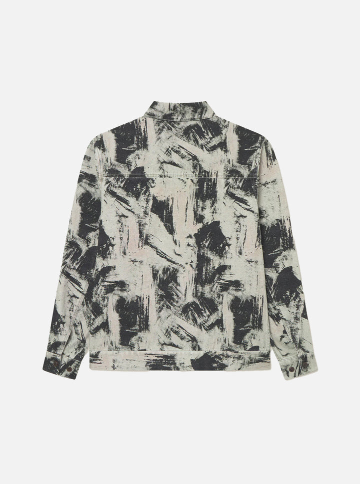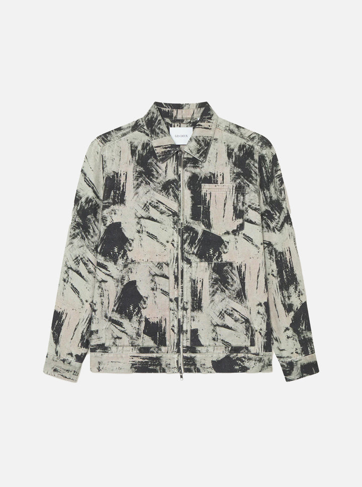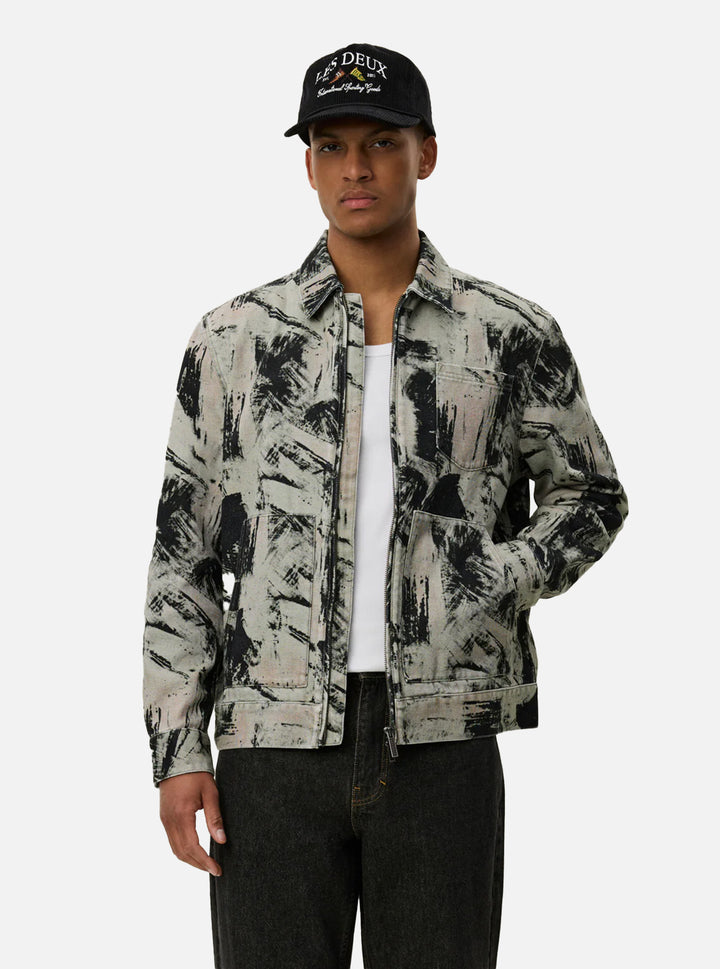 La chaqueta Robert der Les Deux es de lona gruesa cortada a fuego con un estampado abstracto de pinceladas inspirado en estilos artísticos expresivos. Incluye bolsillos de trabajo clásicos en la parte delantera, puños ajustables y una cremallera metálica resistente de doble sentido. Opción de pantalón a juego.