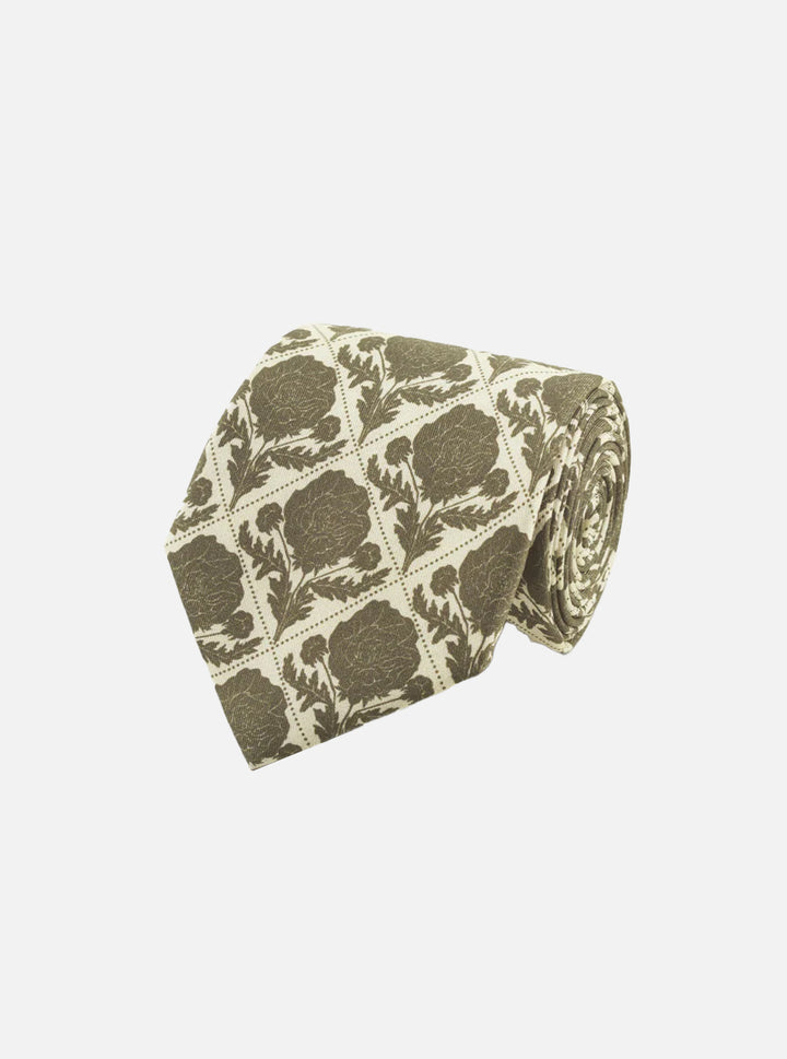 Una corbata de seda refinada con personalidad sutil. La corbata Tile Flower de Les Deux presenta un estampado floral tejido con un toque geométrico.