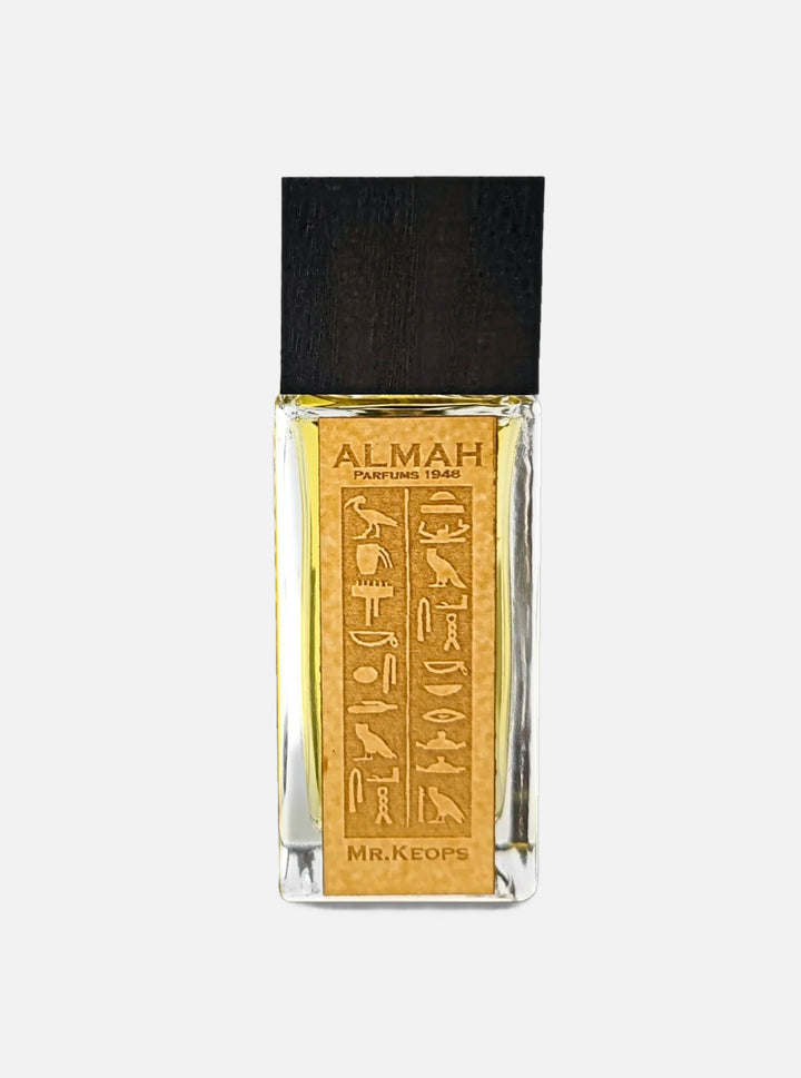 Mr. Keops de ALMAH es un homenaje al color dorado usado habitualmente en la cultura Egipcia, la cual ha permanecido durante más de 3000 años. Es una rica mezcla de Aceites Esenciales de una antigua formula secreta encontrada en el mercado de un antiguo bazar de El Cairo, hace muchos años. Después de meses de trabajo con esta vieja formula, Jaume y Jordi fueron capaces de crear una sublime composición, para encontrar la música dentro del perfumen. La historia hecha fragancia, la pasión de una conexión entre la dorada arena y la luz de Barcelona.