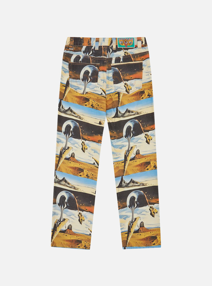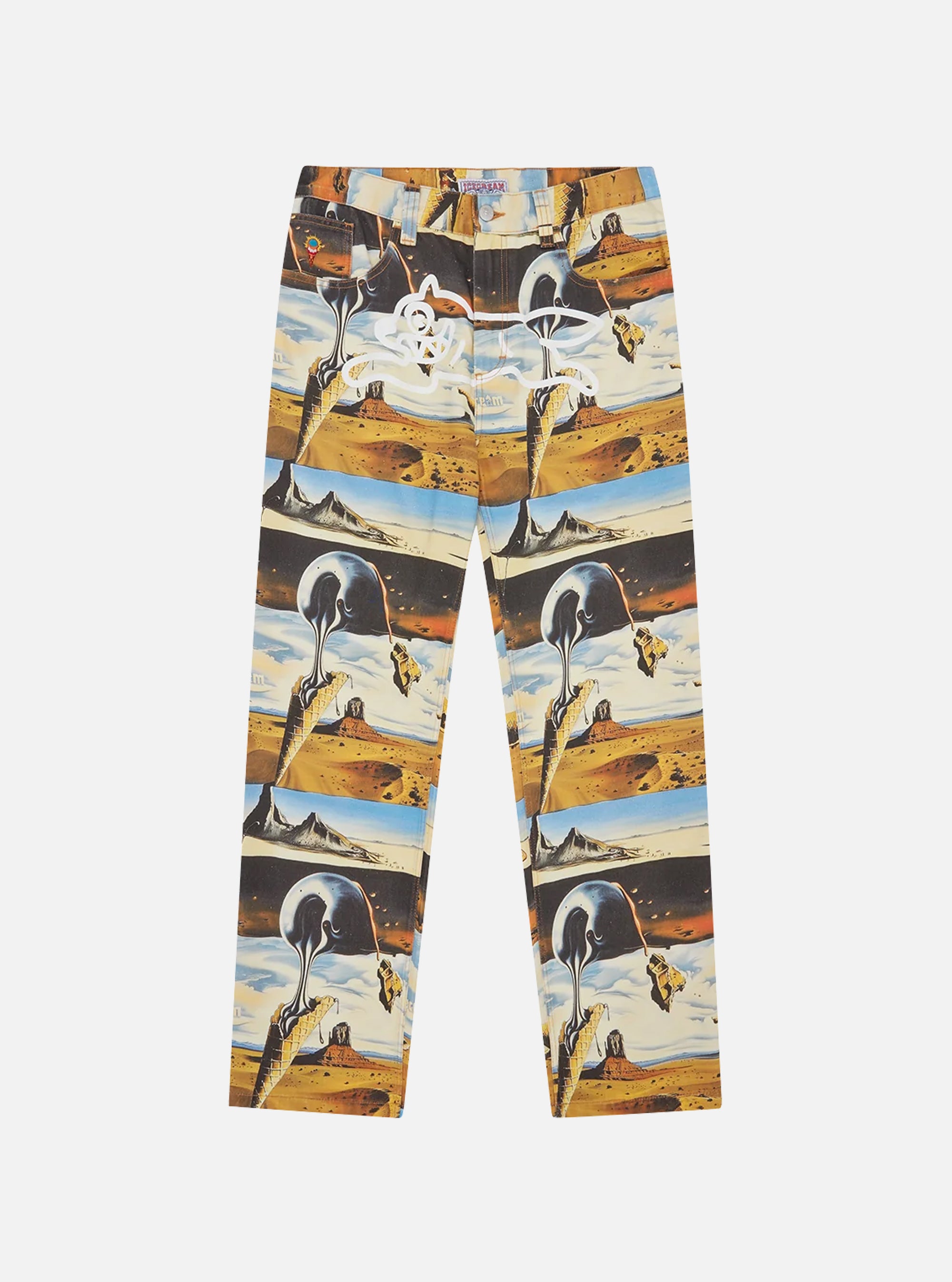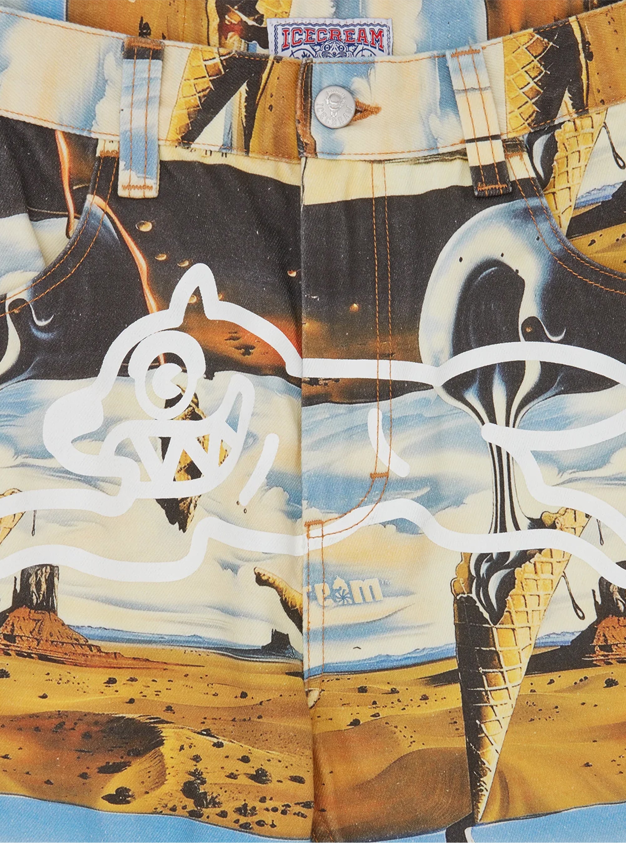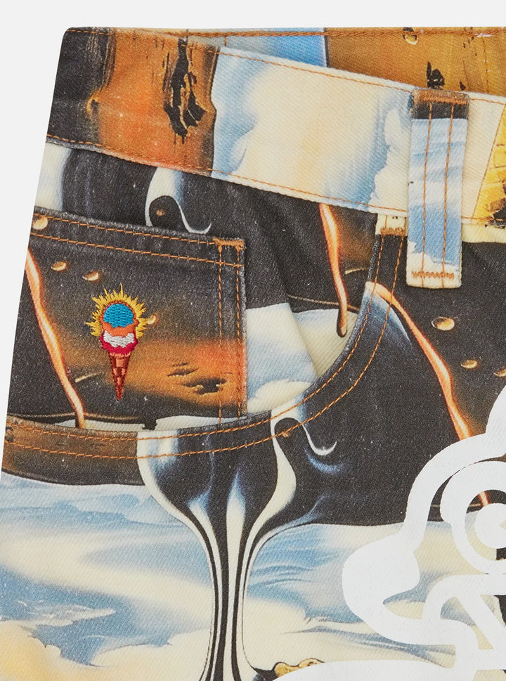 El pantalón vaquero Double Scoop Dreamscape de ICECREAM Presenta un estampado onírico integral y el running dog caracteristico de la marca en la parte delantera. Cierre con cremallera. Corte holgado.