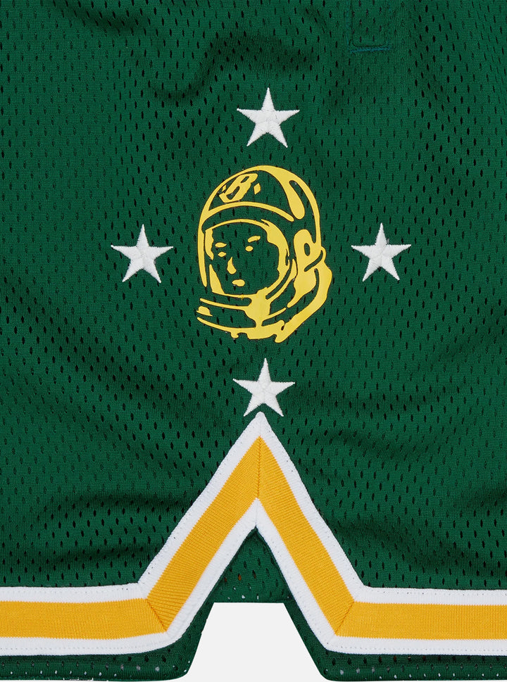 Pantalones cortos de baloncesto de malla Astro Star de Billionaire Boys Club, diseñados con el logo de casco Astro de satén en los costados, detallados con cinta decorativa y estrellas bordadas.