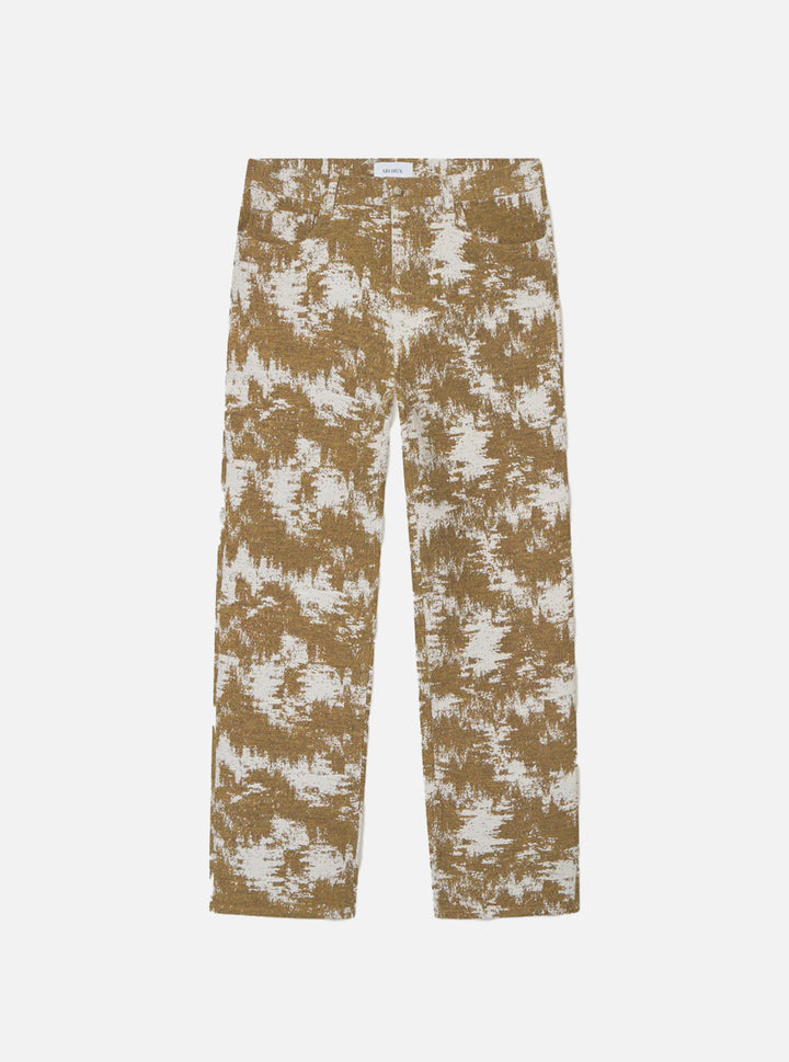 El Ryder de Les Deux es un pantalón cónico de cinco bolsillos en mezcla de algodón y poliéster jacquard de dos tonos, con el abjo recortado para un acabado elegante. A juego con la sobrecamisa Layton Cattle