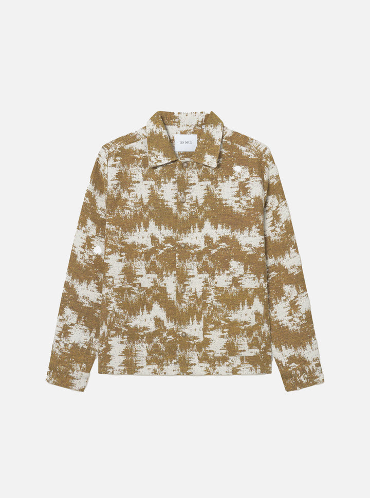 La sobrecamisa Layton Cattle Jacquard de Les Deux es una versión audaz de la sobrecamisa clásica, confeccionada en un tejido jacquard de dos tonos con un dobladillo recto y un cuello ancho para una silueta definida. A juego con el pantalón Ryder Cattle