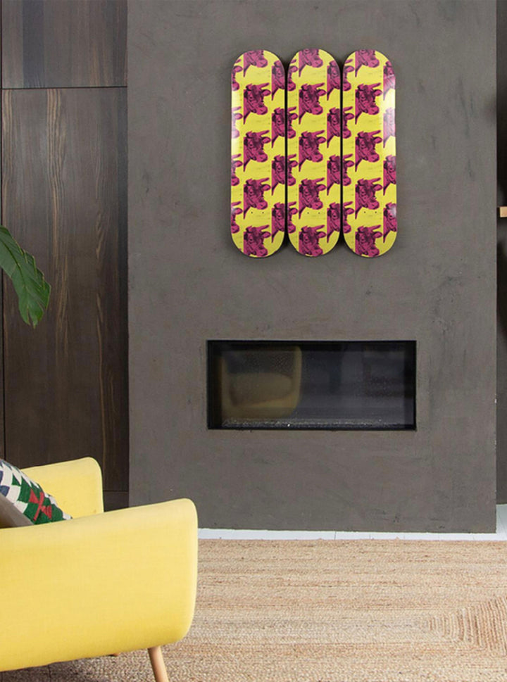 Cow (pink & yellow) - Theskateroom art edition bajo licencia. ©/®/™ The Andy Warhol Foundation for the Visual Arts, Inc.