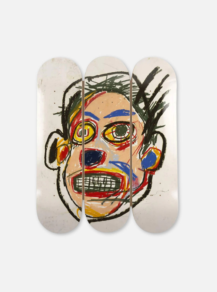 Esta pieza de arte en skates presenta la obra de arte Untitled (Face), 1982 © Estate of Jean Michel Basquiat. Licencia de Artestar, Nueva York.