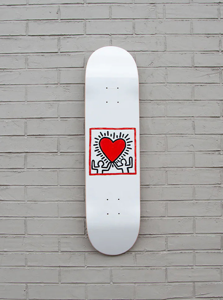 El corazón representado en esta edición refleja la creencia optimista de Keith Haring en la humanidad y el poder del amor.